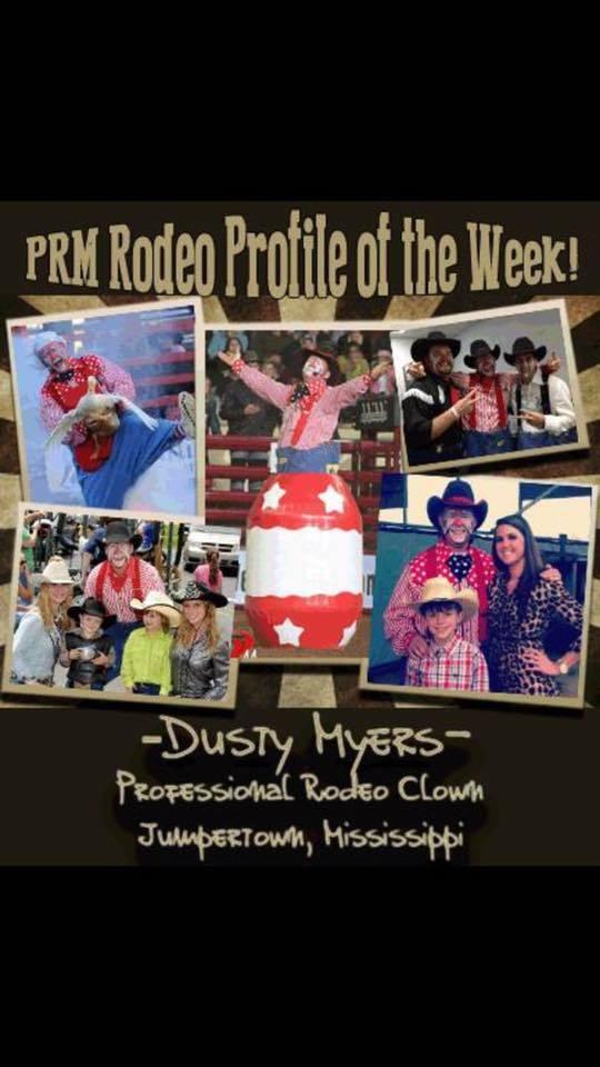 Dusty Myers, from Jumpertown, Mississippi, has traveled the world entertaining crowds for several years now. He started at the age of thirteen fighting bulls and accomplished several awards in that sport. Fast forward a few years, he changed hats in the world of rodeo. He found entertainment was a far better future than being run down by a two- thousand pound bull. He likes to mix old school slapstick comedy with a bit of male cheerleader to entertain audiences throughout the country.